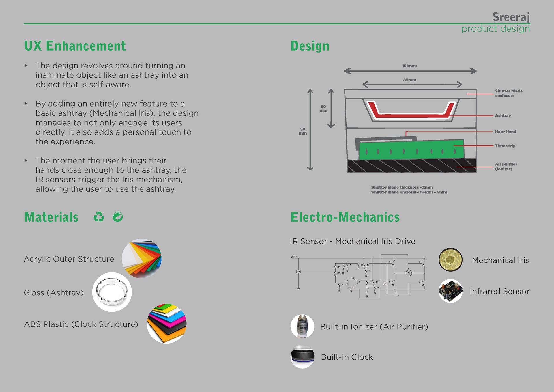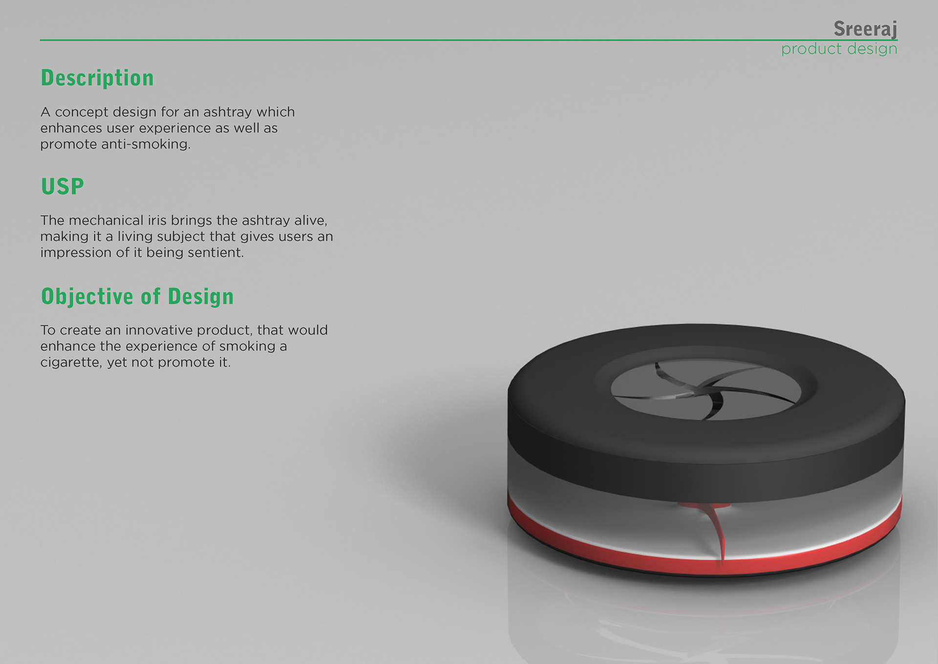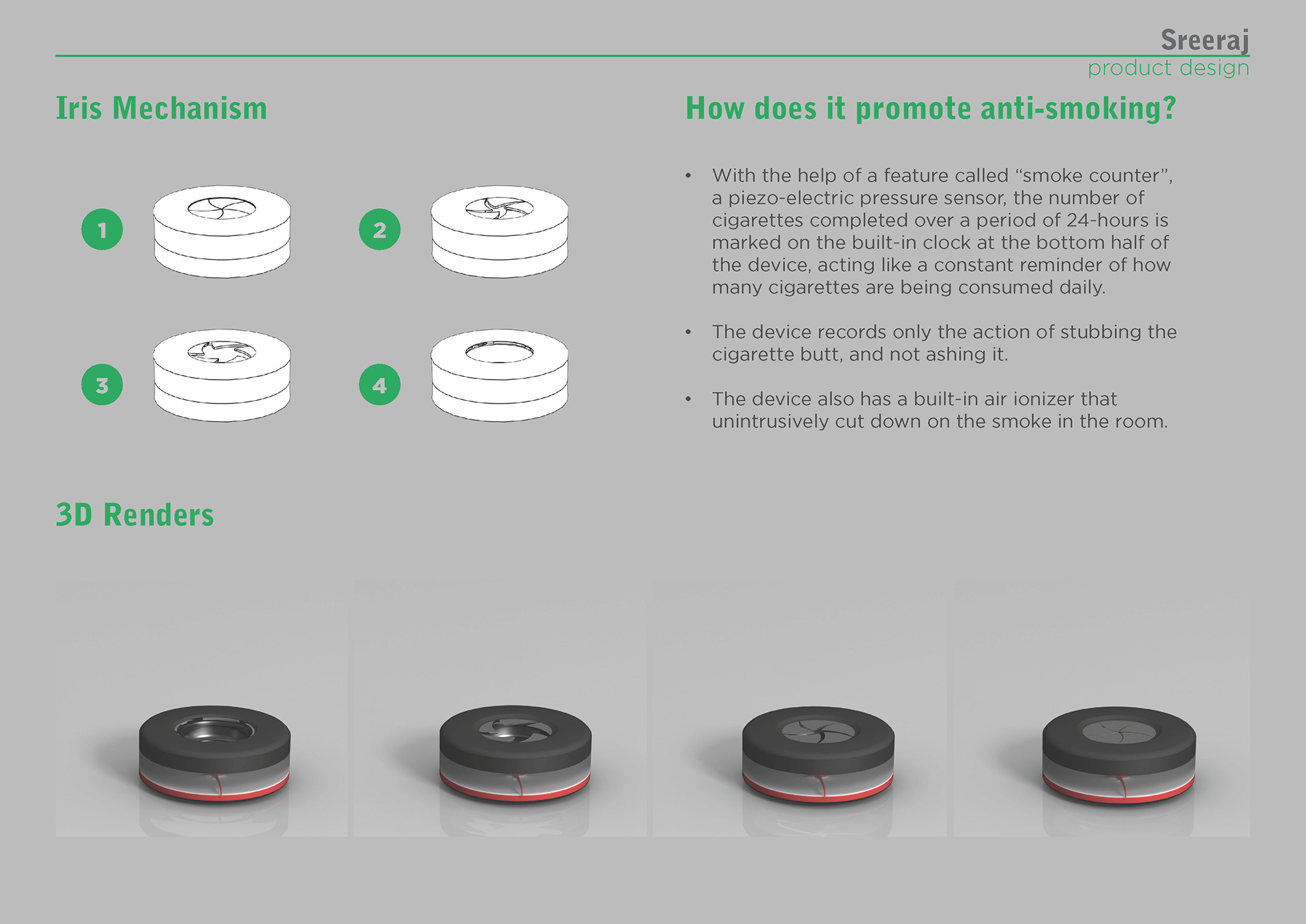 A concept design for an ashtray which enhances user experience as well as promote anti-smoking.